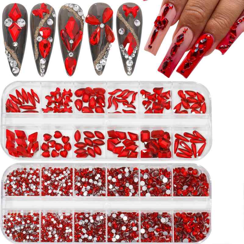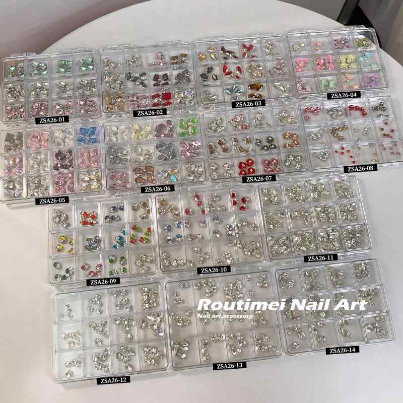 レディース ネイルパーツ DIY ガラスストーン 平底 幻彩 12格 長条ボックス 装飾アクセサリー 服装補助材 2点セット キラキラ 輝き 細工 手作り ネイルアート アクセント デコレーション クリスタル ビーズ ラメ スパークル ファッション コー(x3)