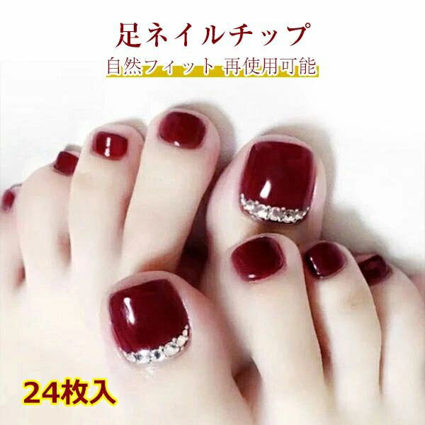 ネイルチップ 足 24枚入り 親指 ネイルシール 足 つけ爪 繰り返し使える ジェルネイルチップ サマーネイル 夏 結婚式 成人式 足用ネイル 簡単 剥がせる フット用 メール便