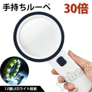 【期間限定】拡大鏡 ルーペ手持ちルーペ 拡大鏡 30倍 12個LEDライト付読書ルーペ レンズ交換可能 虫眼鏡 軽量 読書 昆虫観察 宝石鑑定 精密作業 贈り物