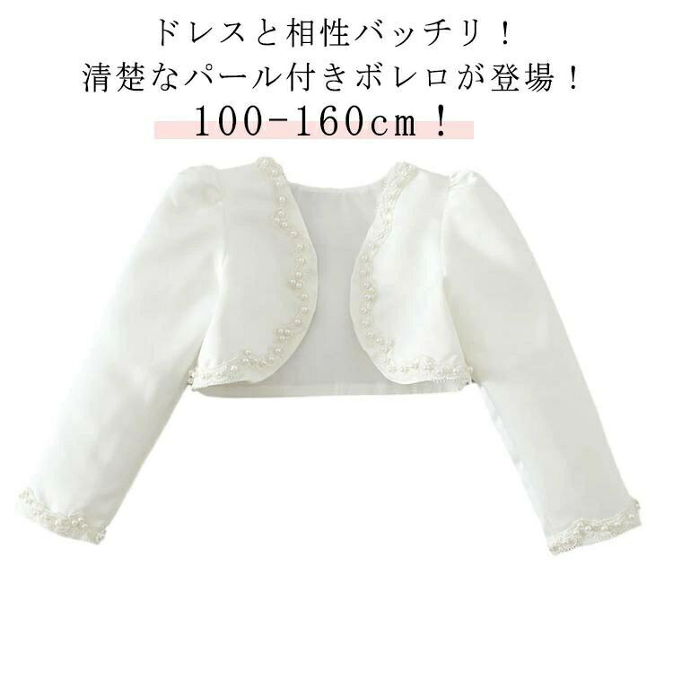 カーディガン 子供服 ボレロ キッズ 長袖 ドレス フォーマル 結婚式 ピアノ発表会 女の子 ジュニア かわいい シンプル 白 子ども プリンセス リングガール 七五三 バレエ プチプラ 100 110 120 130 140 150 160cm