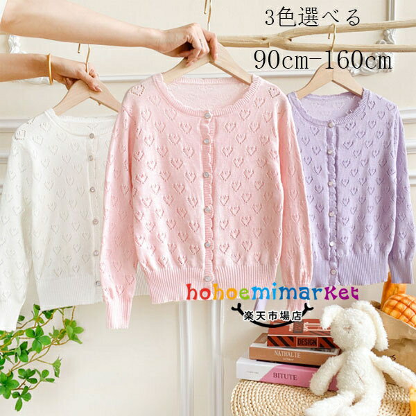 送料無料 子供服 女の子 ニットカーディガン ハート柄 アウター スウィート 姫系 春 夏 秋 キッズ 長袖 ニットカーディガン ピンク パープル ホワイト 姉妹 双子 プレゼント かわいい カーディガン 日焼け止め 誕生日 結婚式 呼ばれ 発表会 90 10 110 120 130 140 150 160