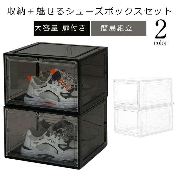 防塵 シューズボックス クリア 組み立て式 大容量 扉付き スリム 靴箱 玄関収納 下駄箱 2個セット 男女兼用 収納ボックス おしゃれ 積み重ね 簡易組立 シューズケース シューズラック 靴ケース 靴棚 コレクション 展示 新生活 一人暮らし 単身赴任 送料無料
