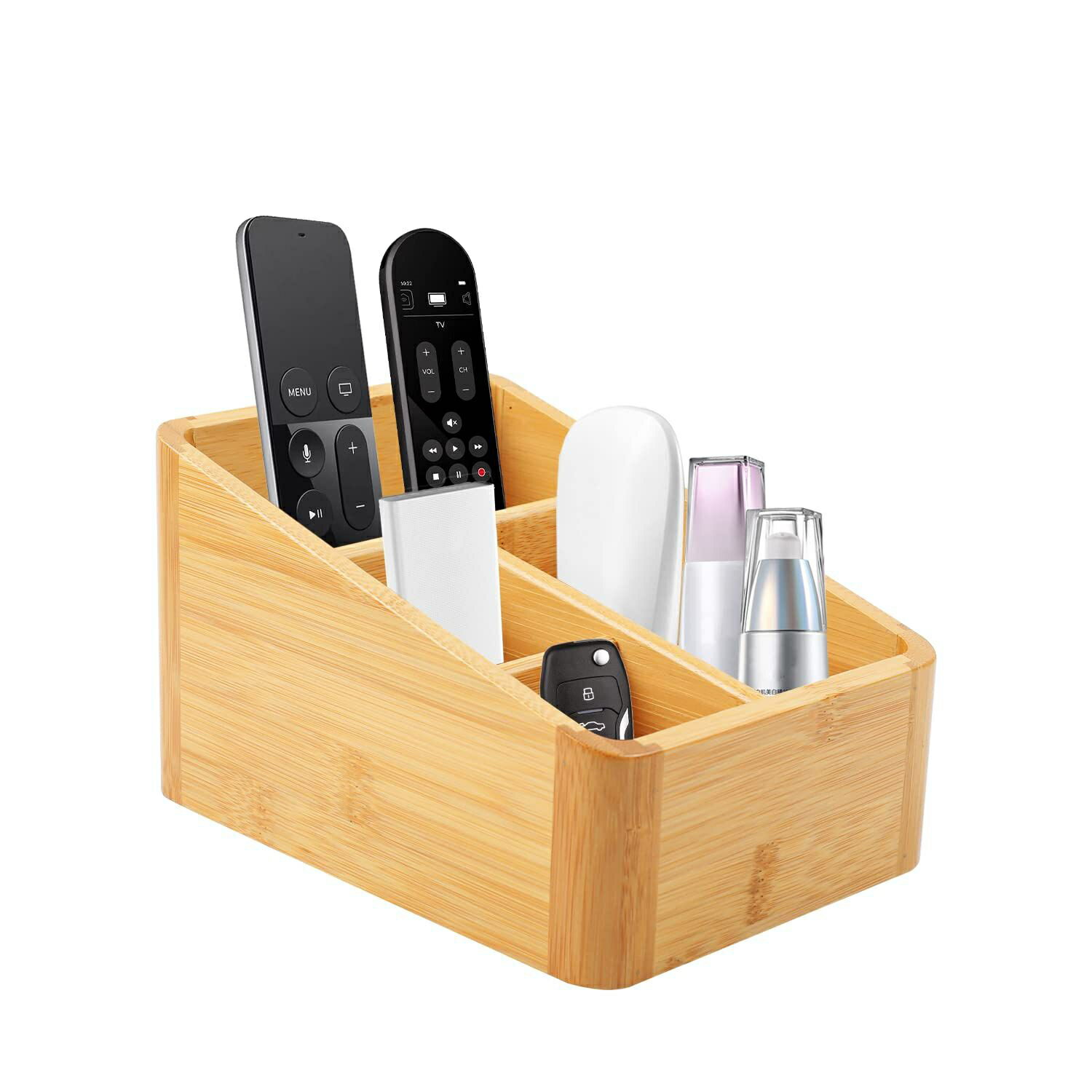 木製リモコンラック 4格仕切り収納ボックス 大容量 おしゃれ な卓上収納リモコンスタンドリモコン置き 卓上 リビング オフィス ベッドルーム用 リモコン収納 小物収納ボックス