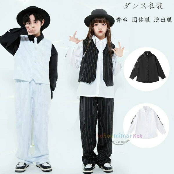 ダンス衣装 白シャツ 黒シャツ 女の子 男の子 長袖シャツ カジュアルシャツ 個性プリント スタイリッシュでかっこいい シャツ キッズ服 ダンス服 舞台 団体服 演出服 学生 シャツ hiphop K-pop ドラムショー 公演服 チアガール 運動会、応援団、練習着
