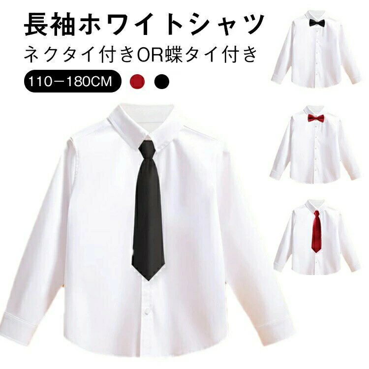 スクールシャツ 入学式 男の子 入園式 卒園式 キッズ 子供 シャツ 長袖 ネクタイ付き 白シャツ 蝶タイ付き 白 ホワイト ワイシャツ 発表会 フォーマル ジュニア Yシャツ 七五三 結婚式