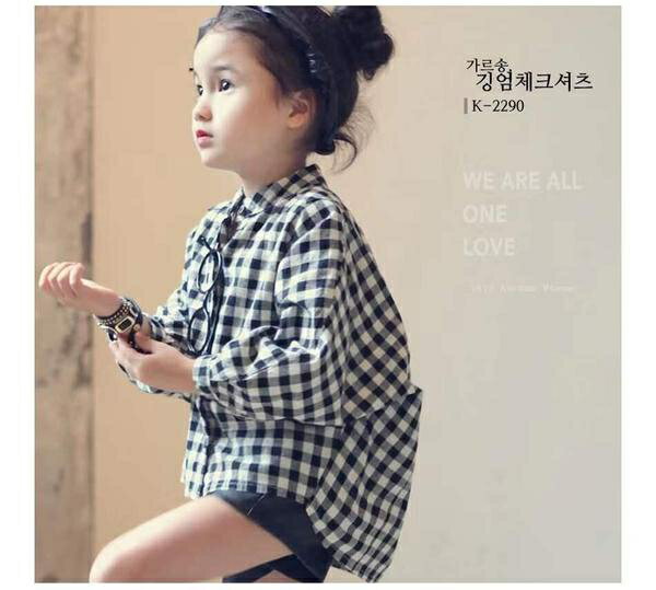 気楽 シャツ ギンガムチェック 韓国 綿100% ブロックチェック ギンガムチェック モノトーン 白黒 シャツ ブラウス ボタン ドルマンスリーブ 90 100 110 120 130 140 150 男の子 女の子