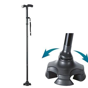 イーチャンス ケーンセーフ ショート 単品 杖 ステッキ 4点支持 折りたたみ 軽量 介護 歩行補助 伸縮式 led ライト 搭載 イーチャンス