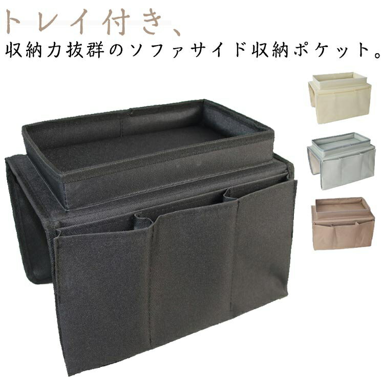 ソファーサイド収納袋 ソファポケット トレイ付き ソファ肘置き掛け袋 ファアームレストバッグ ソファーサイドバッグ ベッドサイドバッグ 収納袋 5ポケット 収納力抜群 スマホ 雑誌 小物入れ リモコン収納
