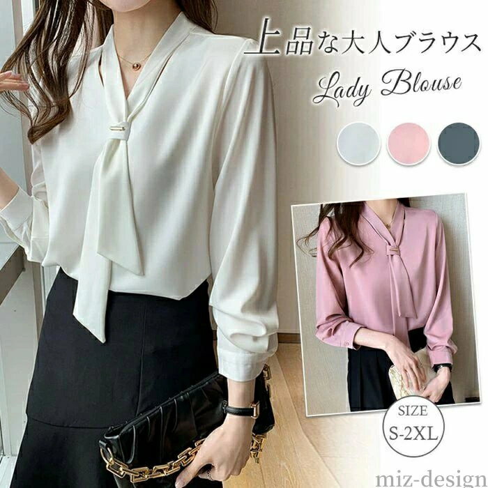 シンプル シャツ トップス 長袖 フォーマル シフォン ボウタイ ブラウス とろみシャツ レディース ボウタイブラウス