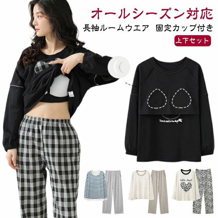 ルームウェア パジャマ レディース 上下セット 秋物 秋パジャマ 可愛い 長袖 トップス ロングズボン 部屋着 パジャマ 春秋 バレンタイン プレゼント