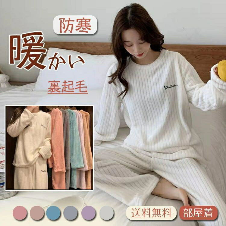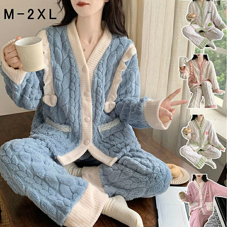 パジャマ ルームウェア レディース 秋冬 モコモコ 長袖 パジャマ フランネル ルームウェア 無地 大きいサイズ 暖かい 上下セット 可愛い 厚手パジャマ 女性 部屋着 寝巻き 5色