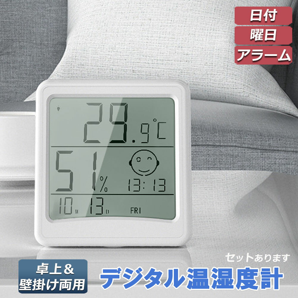 デジタル 温度計 湿度計 温湿度計 小型 時計機能 バックライト付き 大画面 見やすい 表情表示 アラーム付 置き掛け兼用 卓上 壁掛け 華氏 摂氏 室内温度計 大画面 コンパクト 時計機能 熱中症 乾燥対策 室内 赤ちゃん 風邪 おしゃれ 5
