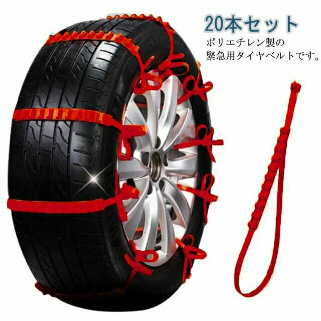 非金属 スノーチェーン 雪道 高性能 樹脂チェーン 20本入り 簡単装着 凍結 タイヤチェーン 事故 悪路 防災 緊急脱出 滑り止め 汎用 簡易型 雪チェーン 車用チェーン ジャッキアップ不要 使い捨て スノーヘルパー