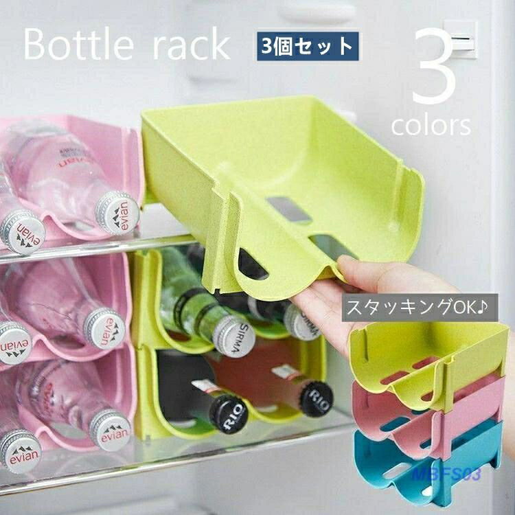 ラック 冷蔵庫用 積み重ね式 収納 ケース ペットボトル ボトル ホルダー スタンド ストッカー 缶ストッカー ボトルラック ビール おしゃれ 衛生的 省スペース 3個セット