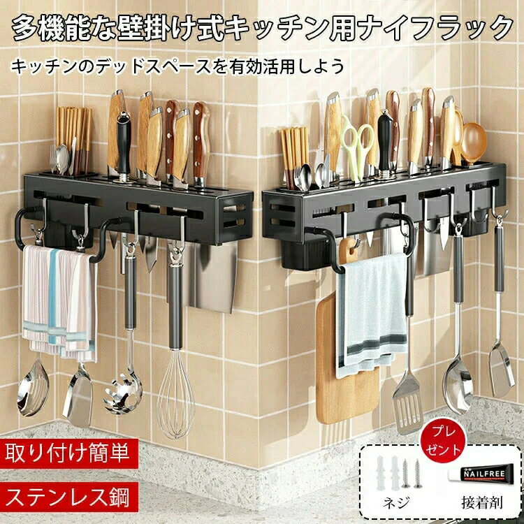 ナイフラック 壁掛け 包丁立て キッチンツール フック ステンレス ブラック 30cm 40cm 包丁 収納 包丁スタンド おしゃれ ナイフラック 壁面 ナイフスタンド ほうちょうたて 箸入れ きっちんつーる 箸立て キッチン用品 送料無料