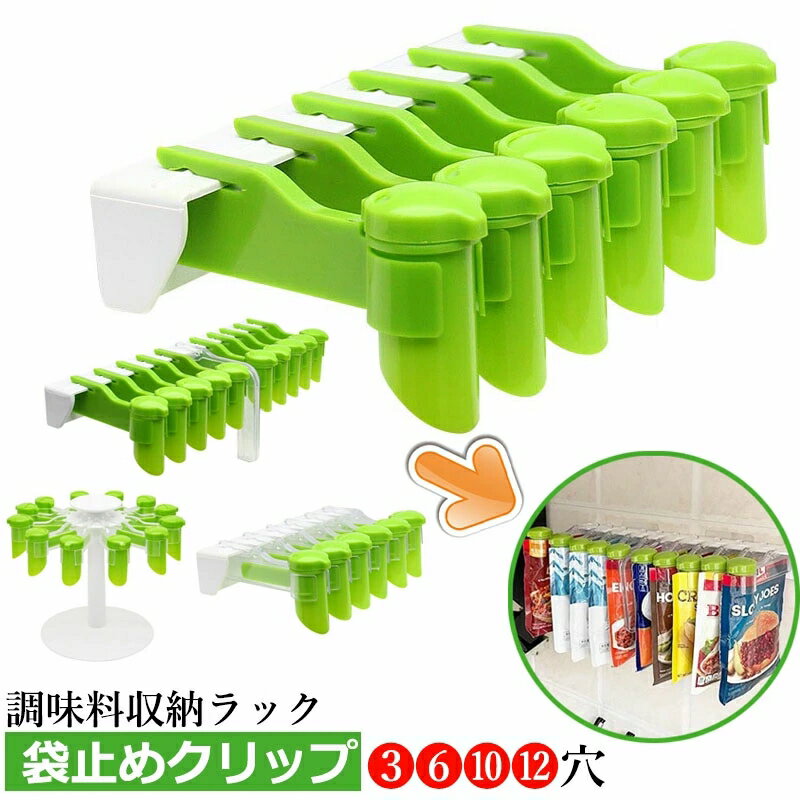 袋止めクリップ 調味料収納ラック 壁掛け式/回転式 注ぎ口付き スパイスオーガナイザー キッチン 塩 コショウ 調味料収納 食材保存 防湿 酸化防止 台所収納 鮮度保持 多機能 省スペース お手入れ簡単