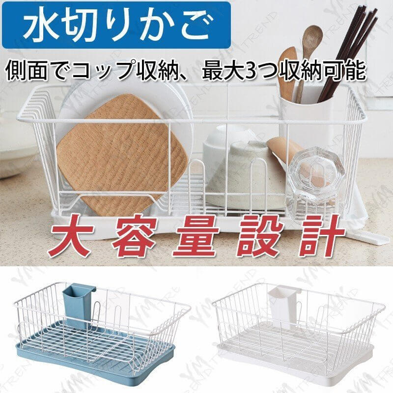 お買い物マラソン【P5倍】水切りかご 水切りカゴ キッチン 水切りラック スチール皿立て 水切りバスケット グラスラック 水切りトレー ディッシュラック 水が流れる おしゃれ 水切りラック 箸立てポケット付き 可動式