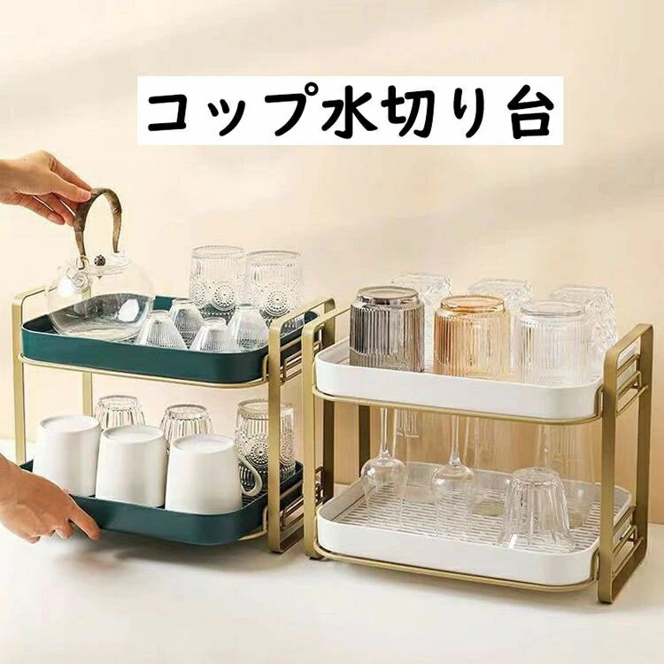 カップラック キッチンラック 収納ラック おしゃれ INS カップ収納棚 2段 キッチンドレンラック 水切りトレイ 水気取りラック 大容量 多目的カップラック 一人暮らし 新居祝い 引っ越し プレゼント ギフト おすすめ 2色