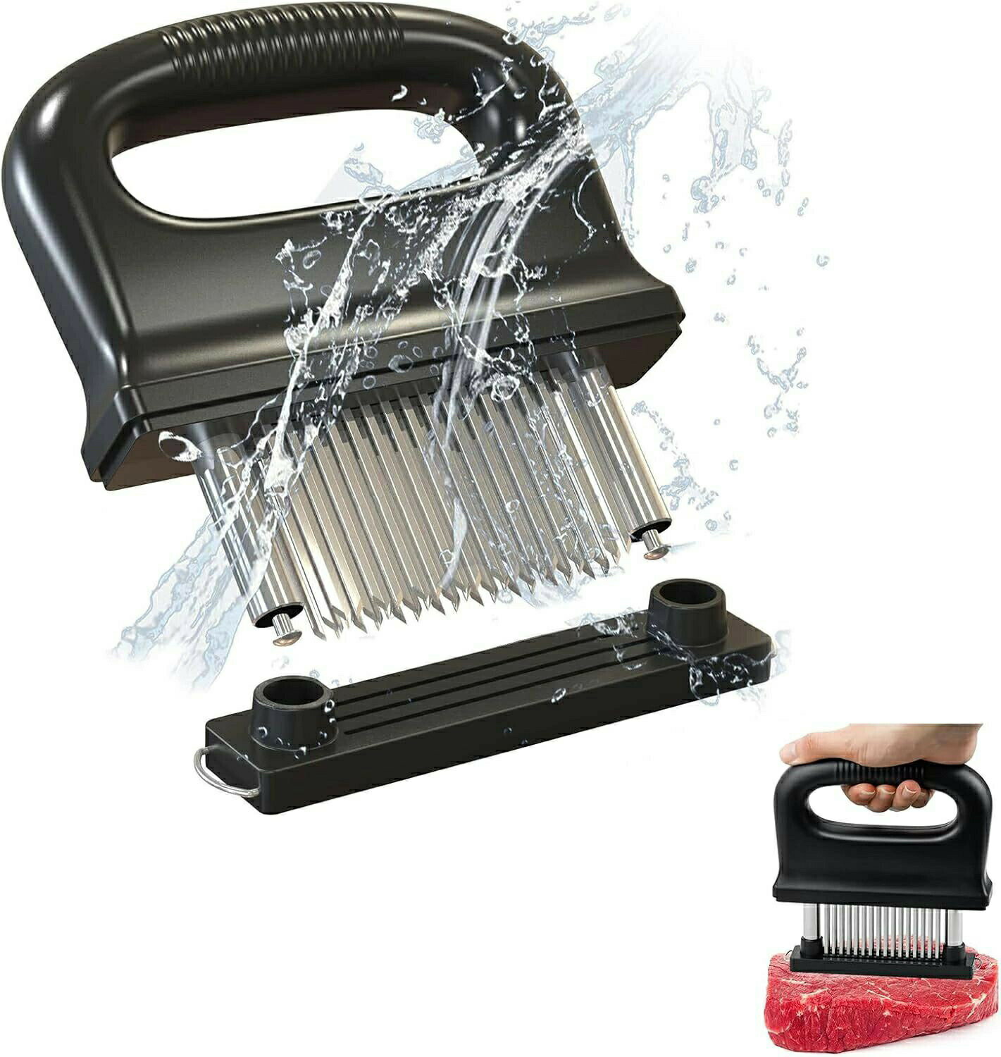 ミートテンダライザー 肉筋切り器 肉叩き 48刃 ステンレス製 肉刺し器 肉の筋切り器 ステンレススチール 手持ち 分解して洗浄できるステーキテンダライザー