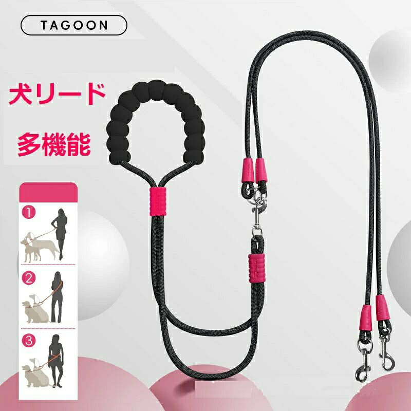 犬リード 【2匹用】 多機能 肩掛け式 腰に掛け式 ハンズフリー 多頭飼い用リード 2頭引き ショルダーリード 絡まない 0.85+0.95m 小型犬 中型犬 しつけ 散歩用リード 丈夫 おしゃれ