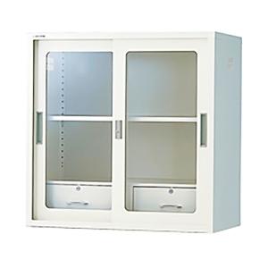 薬品庫 耐薬引違保管庫 引出し付 ガラス戸 奥深 アズワン スチール 外寸:880×515×880mm 鍵付き引出し付き ホワイト N-515GH・OW ◆コ