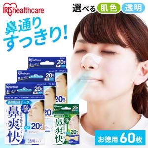 鼻腔拡張テープ 鼻孔拡張テープ 60枚 ふつうサイズ 透明 肌色 鼻呼吸 鼻づまり スポーツ いびき まとめ買い アイリスオーヤマ BKT-20H BKT-20T *