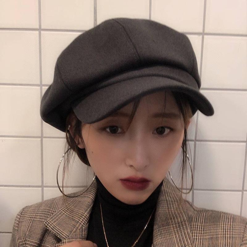 レディース 秋 冬 ハンチング帽 おしゃれ ダーク グレー ひさし キャップ 無地 レトロ 外観 シンプル 短い つば 裸 ベレー 帽