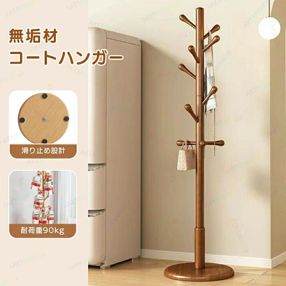 ポールハンガー コートハンガー ハンガー 衣類ラック コートラック 無垢材 ビーチ材 耐荷重90kg フック8個/10個 収納力抜群 コート掛け 洋服掛け かばん掛け 帽子掛け スカーフ 小物 収納 円形ベース 安定性 滑り止め底 頑丈 衣類収納 玄関収納 幅38×高さ171/176cm