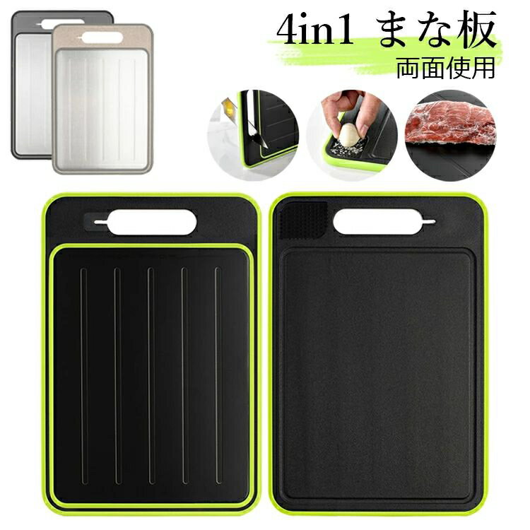 【6%OFFクーポン】4in1 まな板 急速解凍プレート 両面使える 解凍プレート 急速 アルミ合金 自然解凍プレート 両面急速解凍まな板 海鮮 肉類 ステーキの快速解凍皿 解凍まな板 耐熱 滑り止め キッチン用削り器付きまな板 軽い 耐熱 まないた 食洗機対応 送料無料