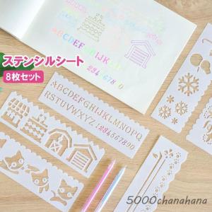 ステンシルシート 8枚セット ステンシルプレート 描画 テンプレート 絵図 製図 塗り絵 DIY 手帳 定規 アルファベット 数字 イラスト