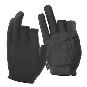 おたふく手袋 合皮手袋 フーバー [合成皮革 甲部ストレッチ素材 ショート丈 3本指出し] FB-62 ブラック L