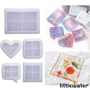 ハート型 シリコンモールド トレイ 四角形 樹脂 エポキシ 長方形 UVレジン 小型 お皿 多用途 可愛い シンプル 再利用可能 コースター 抜き型 手芸品 モールド