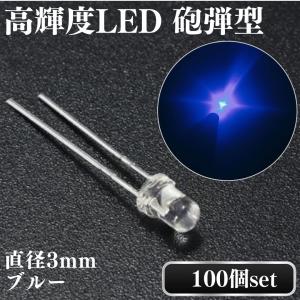 高輝度LED 砲弾型 LED 3mm ブルー 青 寒色 透明 電球 蛍光灯 発光ダイオード クリアレンズ クリアトップ