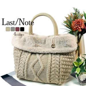 トートバッグ レディース ニット エコファー 小さめ 軽い ケーブル柄 アラン柄 ふわふわ 編地 配色 マグホック