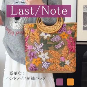トートバッグ 刺繍 ファスナー スパンコール キャンバス バンブーハンドル キャンバス