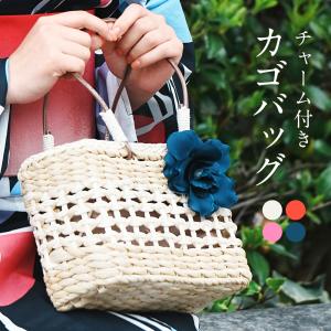 かごバッグ 浴衣 生成り 巾着 チャーム付き レディース かご 籠バッグ カゴバッグ かご巾着 赤 手提げ 手さげ 鞄 かばん カバン 横型 小さめ