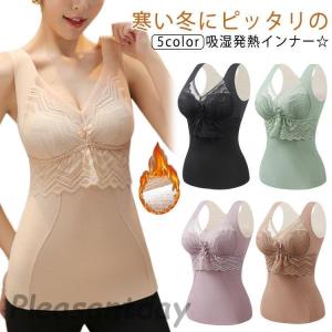 タンクトップ レディース 発熱インナー 暖かい 厚手 あったか おしゃれ 防寒 秋 冬 美ライン 重ね着 ボア付き ノースリーブ 保温 ナイトブラ