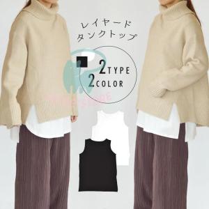 タンクトップ レイヤード ロング丈 重ね着 レディース サイドスリット 体型カバー インナー トップス ノースリーブ 白 黒 無地 女性 体系カバー
