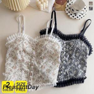 レディース キャミソール レース おしゃれ かわいい ショート丈 花柄 ブラトップ