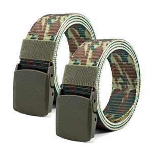 [KOUTEI] 2本セット ナイロンベルト 軽量 フリーサイズ スポーツ ミリタリー サバゲー キャンバスベルト ウエスト 学生 (迷彩-グリ