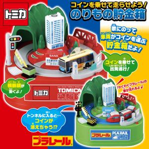のりもの貯金箱 トミカ プラレール 鉄道 動く 貯金箱 電動 電車 バス 走る お金を運ぶ 踏切り 音楽 車両 歌が流れる 面白い /60N◇ のりもの貯金箱