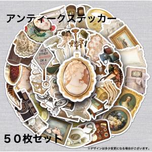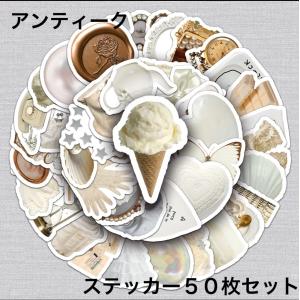 アンティークステッカー ホワイト レトロ シール 50枚セット