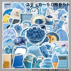 可愛いブルー雑貨ステッカー シール 50枚セット
