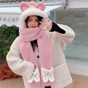 3in1 マフラー 手袋 フード レディース ウサギぬいぐるみ帽子 暖かい 保温 秋冬 小顔効果 アウター パーティー アウター 3点一体マフラー ストール ネックウォー