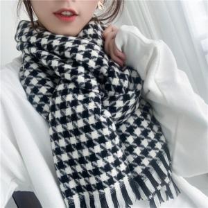ストール レディース 千鳥柄 ロングマフラー 大判 フリンジショール 男女兼用 ボリューム 膝掛け 肩掛け アレンジ自在 ウール100% 秋冬 冷房対策 あったか 防寒