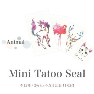 【在庫限り】2枚入+おまけ1枚付。動物モチーフのタトゥーシール全12種。 ボディシール フェイスシール フェス イベントライブ アニマル 猫 ユニコーン イルカ
