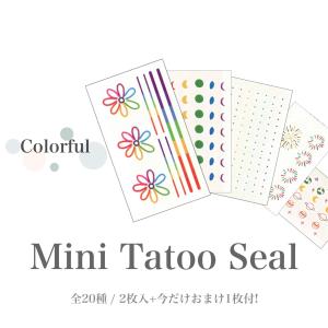 【在庫限り】2枚入+おまけ1枚付。顔にちょうどいい小さめサイズのカラフルなタトゥーシール全20種。 ボディシール フェイスシール フェス イベント ライブ
