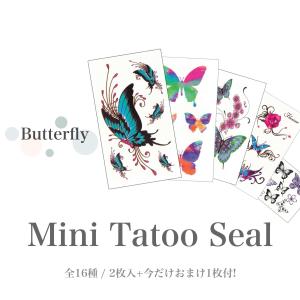 【在庫限り】2枚入+おまけ1枚付。パキッとしたカラーで華やかな蝶のタトゥーシール全16種。 TATOOシール ボディシール フェイスシール フェス イベント ライブ