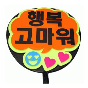 うちわ うちわ用文字(定型メッセージ ●韓● 立体)(幸せをありがとう)(ふきだし)イエローバック のり付きボード手作り 応援うちわ
