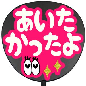 うちわ片面 うちわ (定型メッセージ シール )(あいたかったよ)(チェリー)ピンクバック 手作り 応援うちわ